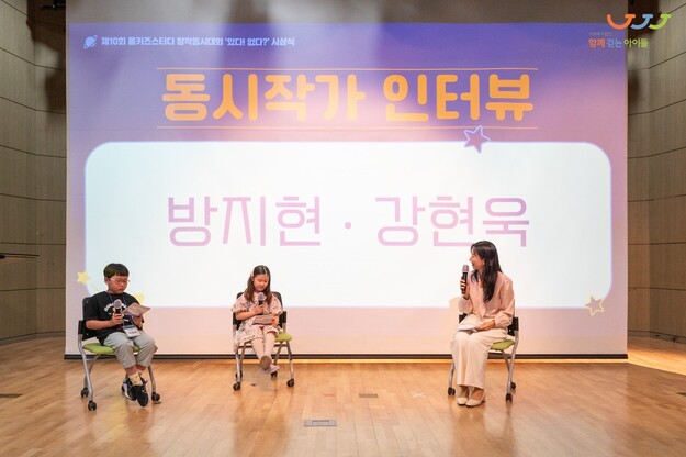 방지현 어린이의 동시 <미래에는 내가 있다>와 강현욱 어린이의 동시 <’미래’에는 웃고 있는 내가 있다>를 직접 낭독하고 인터뷰를 진행했습니다.