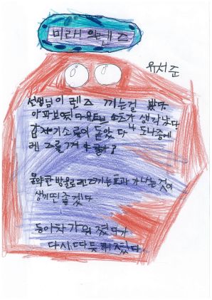 유서준 어린이는 선생님이 렌즈를 끼는 모습을 보고 떠오른 생각과 감정을